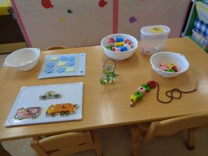 じゅうたんのコーナーは、疲れた時に体を休めたり、0歳児が思いっきり、ハイハイを楽しめるよう工夫をしています。