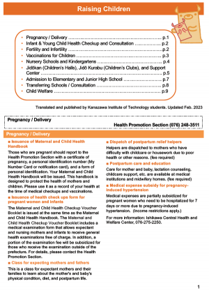 Nonoichi City Living Guide - Raising Children [PDFファイル/288KB] *