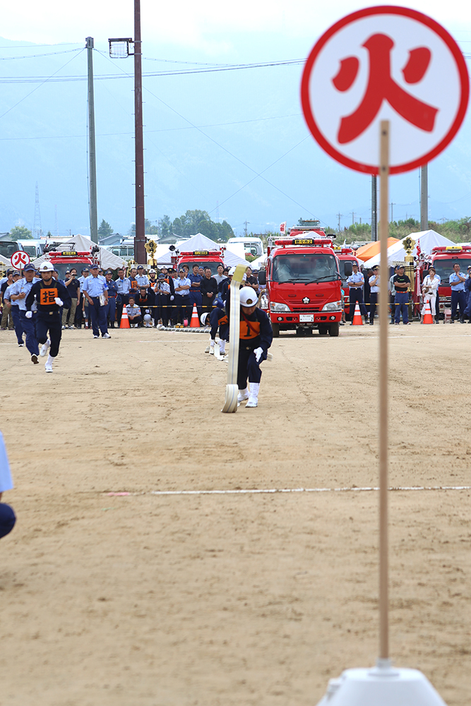 また、7月10日(日曜日)には中央公園運動広場でにで、2年に1度の自警団小型ポンプ操法大会が行われました。結果は、優勝が粟田自警隊、準優勝が上林自警団、敢闘賞が太平寺自警団でした。